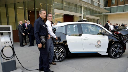 That could soon change. Thirty cities, including New York, Los Angeles, Chicago and Houston, are seeking bulk-rate deals on electric vehicles. They’ve asked manufacturers to submit bids to supply up to 114,000 electric vehicles, ranging from police cruisers to trash haulers, at a total cost of roughly US$10 billion.